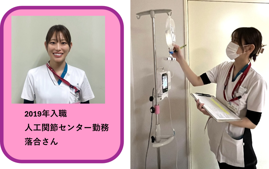 人工関節センターに配属され2年目になりました。1年目は業務に慣れることで精一杯でしたが、2年目になってからは、患者さんにとって必要な看護は何かを考え実践できるようになりました。また、技術面でも、1年目のうちに習得できなかった項目を、先輩のサポートのもと自立に向け積極的に取り組んでいます。疑問に思ったことや、わからないことはその日のうちに学習し、学びを深めるよう努力しています。3年目からも、これまでに得た知識や経験を活かし頑張っていきたいです。
