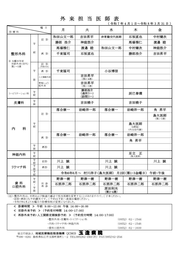外来診療担当表