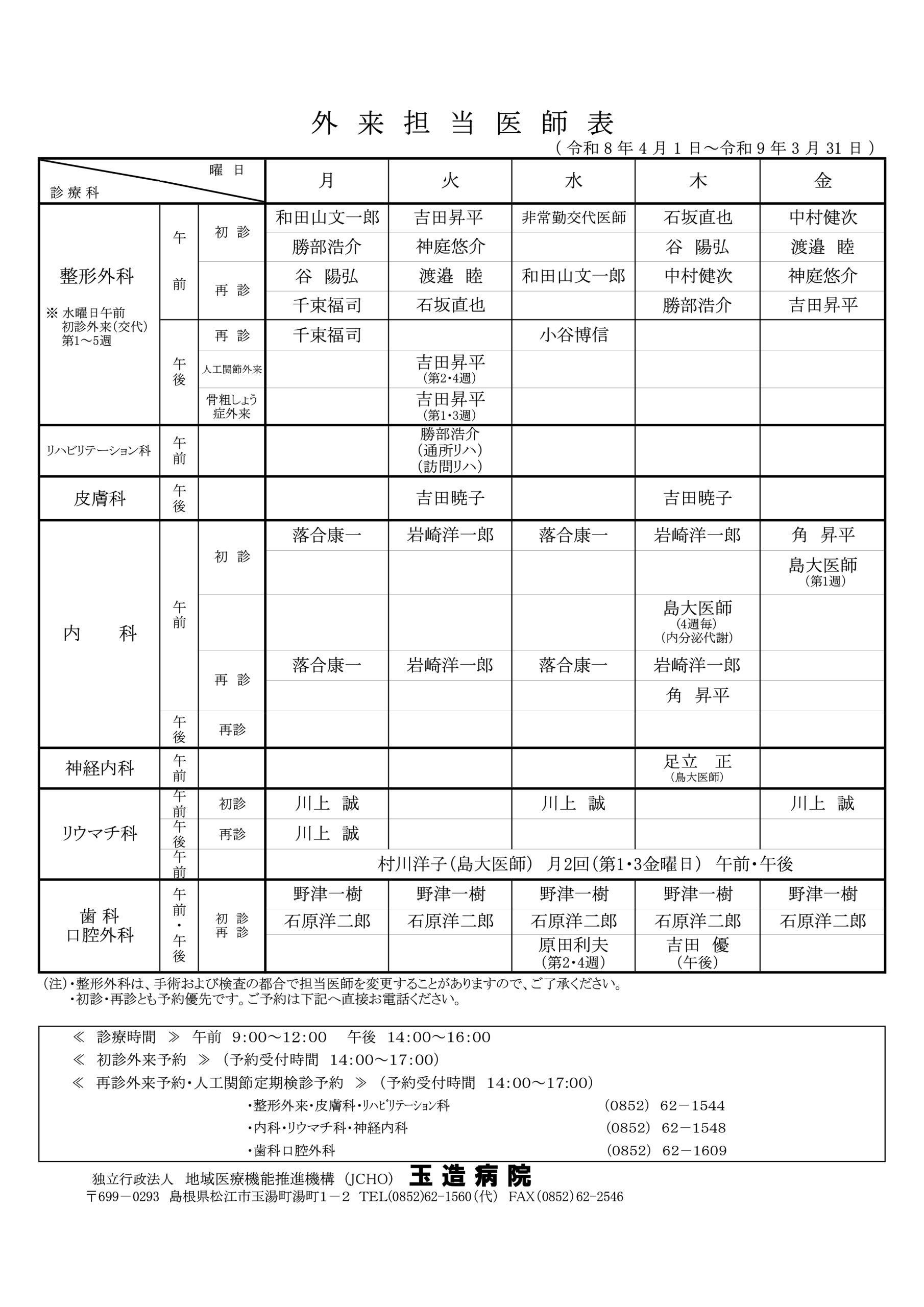 外来診療担当表